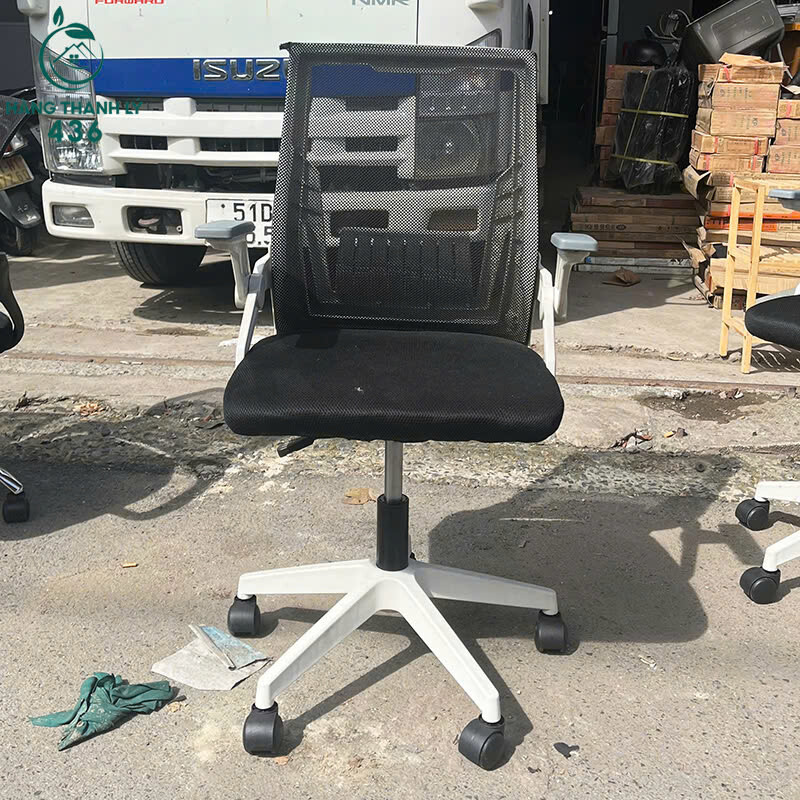 Mô tả: Ghế văn phòng cũ này với thiết kế hiện đại và thoải mái là lựa chọn lý tưởng cho không gian làm việc. Chất liệu lưng lưới giúp thông thoáng, tạo cảm giác dễ chịu cho người ngồi lâu, đồng thời hỗ trợ tối đa cho lưng và cổ. Chân xoay linh hoạt giúp bạn dễ dàng thay đổi vị trí, tiết kiệm không gian và thuận tiện trong mọi công việc. Đây là sản phẩm hoàn hảo cho các văn phòng, công ty, hoặc không gian làm việc tại nhà.