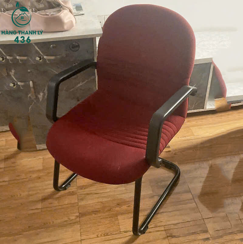 Ghế Văn Phòng Cũ Màu Đỏ Bọc Vải Có Tay Vịn