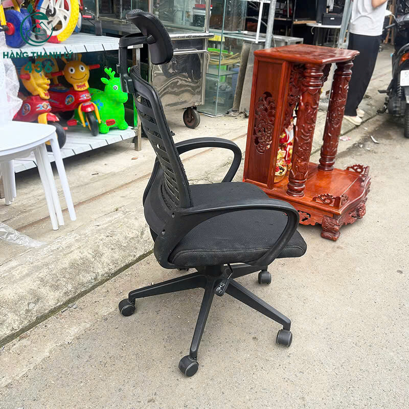 - Mô tả: Ghế văn phòng xoay cũ với thiết kế lưng lưới thoáng khí giúp người ngồi cảm thấy dễ chịu trong nhiều giờ làm việc. Tựa lưng cao kèm đệm gác đầu mang đến sự thoải mái và hỗ trợ tốt cho cổ, hạn chế mỏi vai gáy. Phần ngồi được bọc lưới, êm ái, chống trượt và tạo cảm giác chắc chắn. Tay vịn vừa vặn, bánh xe di chuyển linh hoạt trên nhiều bề mặt, phù hợp cho môi trường làm việc hiện đại. Ghế có thể điều chỉnh độ cao linh hoạt theo vóc dáng người ngồi, đảm bảo tư thế làm việc chuẩn.
