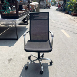- Mô tả: Ghế xoay lưới lưng cao với thiết kế tinh gọn, phù hợp cho văn phòng làm việc hoặc phòng họp. Lưng ghế bằng lưới thoáng khí, hạn chế nóng bức khi ngồi lâu. Tay vịn inox chắc chắn, tạo điểm tựa thoải mái. Chân xoay bằng thép không gỉ, có bánh xe di chuyển linh hoạt, phù hợp với nhiều loại sàn. Đệm ngồi bọc lưới mềm, không bị xẹp lún, đảm bảo độ êm ái khi sử dụng. Ghế có chức năng điều chỉnh độ cao linh hoạt, phù hợp với nhiều nhu cầu làm việc khác nhau.