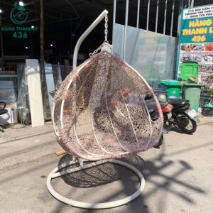 Mô tả: Chiếc ghế tổ chim treo có thiết kế gọn gàng, tập trung vào công năng thư giãn khi sử dụng. Phần ghế đan mây nhựa chắc tay, dễ vệ sinh, phù hợp dùng trong nhà hoặc ngoài trời có mái che. Khung sắt đứng giúp lắp đặt đơn giản, không cần khoan treo trần. Ghế tạo cảm giác nhẹ nhàng, phù hợp làm góc nghỉ ngơi, đọc sách hoặc chụp hình trang trí. Sử dụng ghế thanh lý giúp giảm chi phí đầu tư, nhất là với khách cần mua nhanh để setup không gian ban công hoặc quán nhỏ.