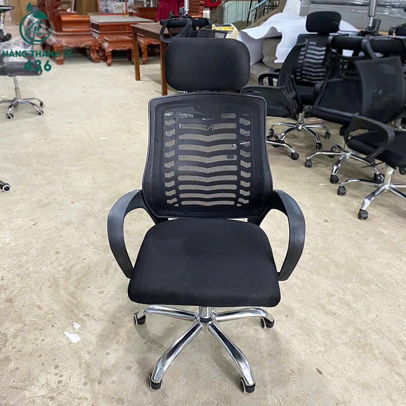 - Mô tả: Ghế văn phòng lưng lưới, thiết kế hiện đại và thoáng mát, giúp người ngồi cảm thấy dễ chịu trong suốt thời gian làm việc. Ghế có thể xoay 360 độ, chiều cao có thể điều chỉnh, phù hợp với mọi nhu cầu sử dụng. Lưng ghế lưới mang lại sự thông thoáng, giúp giảm bớt cảm giác nóng nực khi ngồi lâu. Chất liệu vải lưới bền bỉ, dễ dàng vệ sinh. Ghế có chân kim loại chắc chắn, giúp chịu được trọng lượng lớn, mang đến sự ổn định và độ bền lâu dài.
