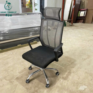 - Mô tả: Ghế văn phòng lưng lưới cũ có thiết kế hiện đại, mang lại cảm giác thoải mái khi ngồi làm việc lâu dài. Phần lưng lưới thoáng khí giúp hạn chế mồ hôi, tạo sự dễ chịu trong suốt ngày dài. Ghế trang bị tựa đầu, tay vịn chắc chắn và khả năng ngả lưng linh hoạt, hỗ trợ tư thế ngồi khoa học, giảm áp lực cho cột sống. Chân inox sáng bóng kết hợp bánh xe xoay 360 độ, di chuyển nhẹ nhàng và tiện lợi. Đệm ngồi bọc nỉ êm ái, ít xẹp lún, phù hợp cho không gian văn phòng, phòng học.