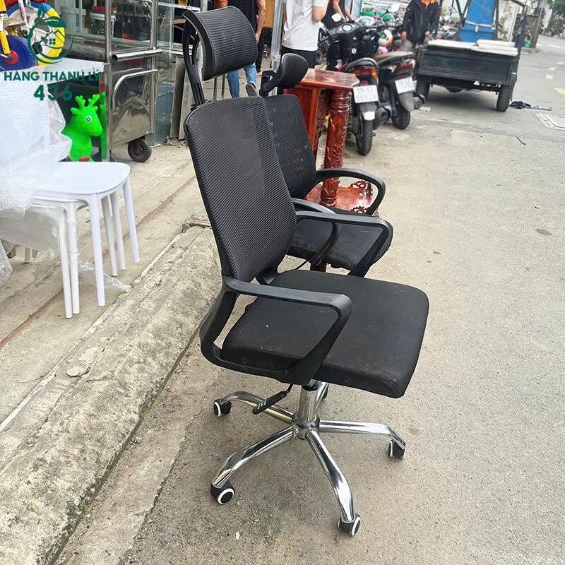 - Mô tả: Ghế văn phòng lưng lưới cũ có thiết kế hiện đại, mang lại cảm giác thoải mái khi ngồi làm việc lâu dài. Phần lưng lưới thoáng khí giúp hạn chế mồ hôi, tạo sự dễ chịu trong suốt ngày dài. Ghế trang bị tựa đầu, tay vịn chắc chắn và khả năng ngả lưng linh hoạt, hỗ trợ tư thế ngồi khoa học, giảm áp lực cho cột sống. Chân xe chắc chắn kết hợp bánh xe xoay 360 độ, di chuyển nhẹ nhàng và tiện lợi. Đệm ngồi bọc nỉ êm ái, ít xẹp lún, phù hợp cho không gian văn phòng, phòng học.