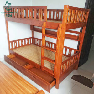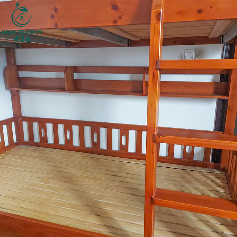- Mô tả: Giường 2 tầng gỗ cũ được thiết kế chắc chắn, khung gỗ dày dặn, chịu lực tốt, đảm bảo độ an toàn khi sử dụng. Sản phẩm phù hợp cho gia đình đông người, phòng trọ, ký túc xá, hoặc không gian tiết kiệm diện tích. Với 2 tầng rộng rãi, giường có thể sử dụng cho cả người lớn và trẻ em, mang đến sự thoải mái khi nghỉ ngơi. Bề mặt gỗ được xử lý nhẵn, dễ vệ sinh và hạn chế trầy xước. Màu sắc tự nhiên của gỗ giúp không gian phòng ngủ thêm ấm cúng và hiện đại.