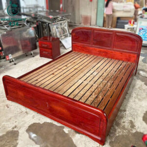 - Mô tả: Giường gỗ cũ được làm từ chất liệu gỗ căm xe, màu cánh gián đỏ, có đầu giường bo cong nhẹ, tạo cảm giác mềm mại và sang trọng. Phần khung giường còn chắc chắn, các nan giường đều và có độ chịu lực tốt. Diện tích nằm rộng rãi, thích hợp dùng trong phòng ngủ gia đình, phòng trọ hoặc homestay. Bề mặt gỗ bóng, dễ lau chùi và còn giữ được độ thẩm mỹ.