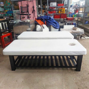 - Mô tả: Giường massage cũ có thiết kế chuyên dụng cho spa hoặc tiệm massage body. Phần khung được làm từ gỗ chắc chắn, chịu lực tốt. Mặt trên bọc nệm màu trắng, dày và êm, tạo cảm giác dễ chịu cho khách khi nằm. Có lỗ thở ở phần đầu, tiện cho khách úp mặt trong quá trình trị liệu. Chân giường có kệ bên dưới để khăn, dầu hoặc vật dụng spa.
