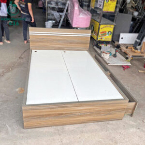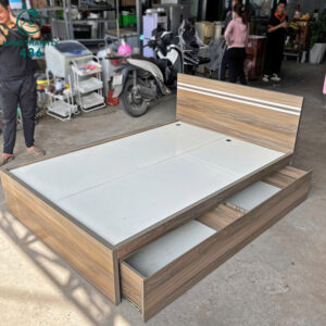 - Mô tả: Giường gỗ cũ được chế tác từ chất liệu gỗ phủ vân gỗ hiện đại, mang lại vẻ đẹp tinh tế và dễ phối hợp với nhiều không gian nội thất. Thiết kế giường gồm phần đầu giường chắc chắn, mặt giường phẳng rộng rãi, phù hợp với nhiều loại nệm. Điểm nổi bật là hai ngăn kéo lớn tích hợp bên hông, giúp tối ưu không gian lưu trữ đồ dùng cá nhân một cách tiện lợi. Kết cấu giường vững chắc, đảm bảo độ ổn định khi sử dụng lâu dài. Màu sắc trung tính, hài hòa, phù hợp với phong cách tối giản hoặc hiện đại.