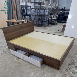 Giường Gỗ Cũ Màu Nâu Kèm Hộc Kéo Đựng Đồ Đa Năng