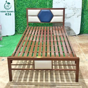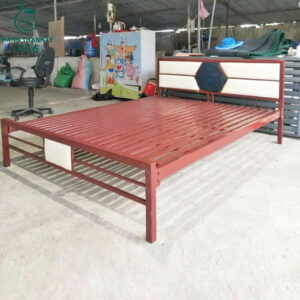 - Mô tả: Giường sắt với thiết kế đơn giản nhưng chắc chắn, phù hợp cho nhiều không gian từ phòng ngủ gia đình, phòng trọ đến ký túc xá. Khung giường được làm từ sắt hộp dày dặn, có khả năng chịu lực tốt, đảm bảo độ bền lâu dài khi sử dụng. Đầu giường được bọc nệm tạo cảm giác thoải mái hơn khi ngồi hoặc tựa lưng. Các thanh giường được bố trí song song, thoáng khí, dễ dàng kết hợp với nệm lò xo hoặc nệm mút thông dụng.