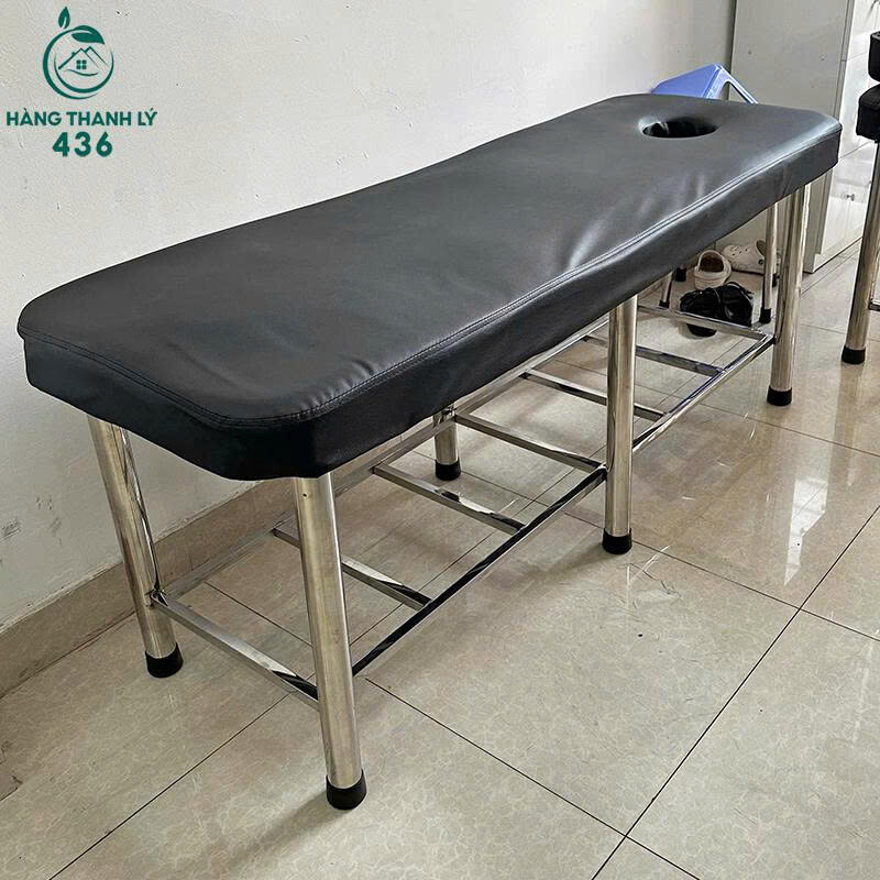 Giường Spa Cũ Khung Inox Bọc Da Màu Đen