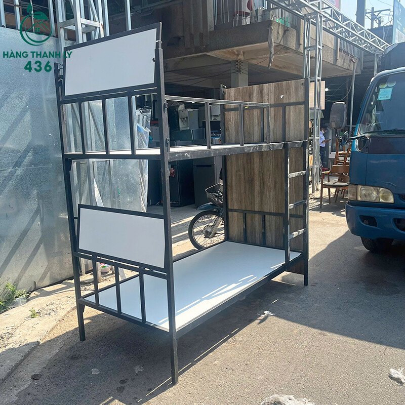 Giường Tầng Cũ 1M9X1M9X90CM Khung Sắt Màu Đen