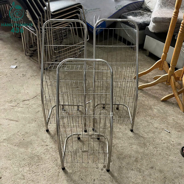 - Mô tả: Kệ inox cũ nhiều tầng được làm từ inox sáng bóng, bền và chắc chắn. Thiết kế nhỏ gọn, có nhiều tầng giúp sắp xếp vật dụng gọn gàng và tiết kiệm diện tích. Phù hợp dùng trong phòng ngủ, phòng khách, tiệm tạp hóa, spa hoặc siêu thị mini. Các thanh inox được hàn chắc, dễ lau chùi. Hàng cũ còn mới khoảng 90%, hình thức đẹp, sử dụng tốt ngay. Đây là lựa chọn hợp lý cho ai muốn mua kệ inox giá rẻ nhưng vẫn đảm bảo độ bền và tính thẩm mỹ cao.