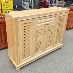 - Mô tả: Tủ có thiết kế rộng rãi và chắc chắn với tông màu sáng, vân gỗ rõ nét, tạo cảm giác thân thiện và dễ chịu. Ở phía trên có một ngăn kéo lớn với tay nắm ẩn, rất tiện lợi để cất giữ các vật dụng nhỏ. Phía dưới có 2 cánh ở 2 bên và 2 cánh ở giữa có thiết kế đục lỗ hình vuông đều đặn, vừa tạo điểm nhấn trang trí độc đáo vừa đảm bảo sự thông thoáng cho bên trong.