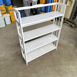 - Mô tả: Kệ gỗ cũ 4 tầng được làm từ gỗ chắc chắn, màu trắng thanh lịch, mang nét cổ điển nhưng vẫn tinh tế. Thiết kế khung thanh mảnh giúp tiết kiệm diện tích, phù hợp để trưng bày đồ decor, chậu cây nhỏ, sách hoặc vật dụng cá nhân. Các tầng kệ cách đều, dễ lau chùi và bền theo thời gian. Hàng còn mới khoảng 90%, kết cấu chắc chắn, có thể dùng ngay mà không cần sửa chữa. Phù hợp cho gia đình, văn phòng, cửa hàng hoặc quán cà phê.