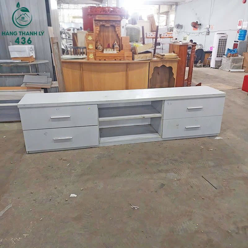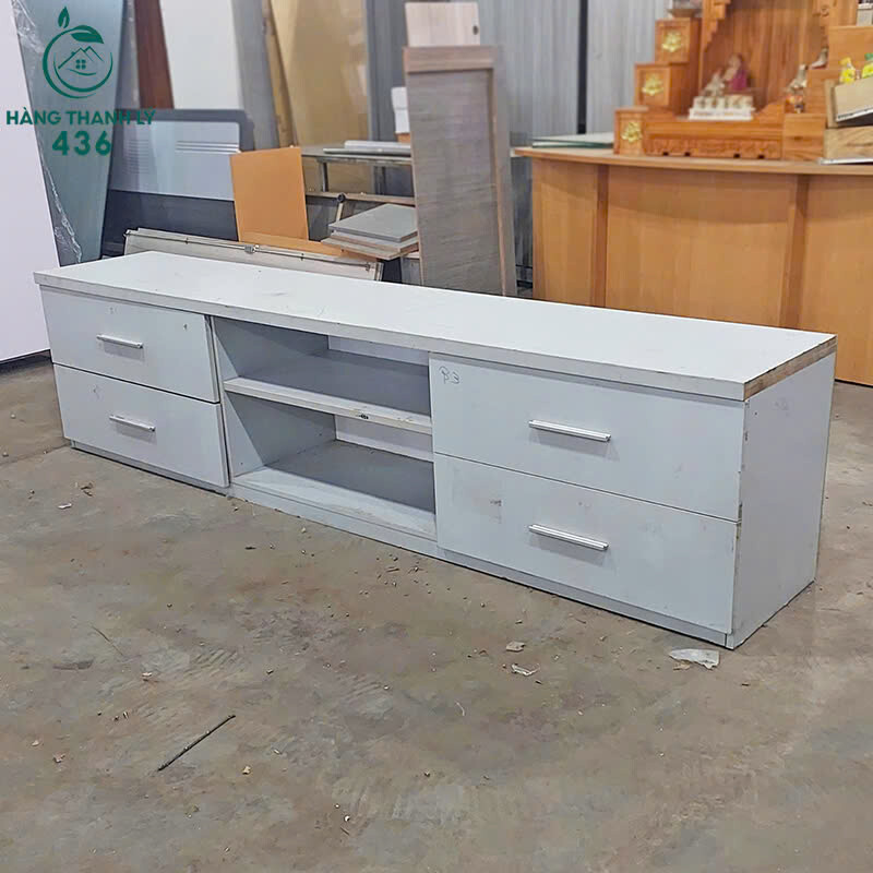- Mô tả: Kệ tivi cũ với thiết kế đơn giản, màu xám hiện đại, dễ dàng phối hợp với các loại nội thất khác trong phòng khách. Với 4 ngăn kéo rộng rãi và 2 khoang trống, kệ tivi này mang lại không gian lưu trữ tiện lợi cho các thiết bị điện tử, đồ trang trí hay các vật dụng khác. Chất liệu gỗ bền bỉ, dễ dàng vệ sinh. Mặt bàn rộng rãi, phù hợp đặt tivi và các phụ kiện đi kèm. Tình trạng kệ còn mới trên 90%, sử dụng lâu dài, thích hợp cho gia đình hoặc văn phòng.