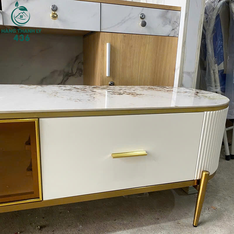 - Mô tả: Kệ tivi cũ này có mặt đá sang trọng, kết hợp với chất liệu gỗ bền bỉ, tạo nên một sản phẩm hoàn hảo cho phòng khách của bạn. Thiết kế hiện đại với 2 ngăn tủ, giúp bạn dễ dàng sắp xếp đồ đạc gọn gàng. Chất liệu đá có độ bền cao, dễ dàng vệ sinh, trong khi đó chân kim loại mang lại sự vững chắc và thẩm mỹ cho sản phẩm. Màu trắng sáng của kệ tivi dễ dàng phối hợp với các phong cách nội thất khác nhau.