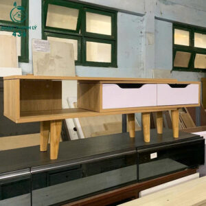- Mô tả: Kệ tivi gỗ cũ với thiết kế nhỏ gọn, phù hợp cho không gian phòng khách, phòng ngủ hoặc căn hộ có diện tích vừa và nhỏ. Sản phẩm gồm 2 ngăn kéo màu trắng nhẹ nhàng, dễ dàng lưu trữ đồ dùng như remote, sách, giấy tờ, giúp không gian luôn gọn gàng. Phần chân trụ gỗ cao, tạo sự thông thoáng, đồng thời dễ vệ sinh bên dưới. Chất liệu gỗ bền đẹp, bề mặt phủ màu vân gỗ sang trọng kết hợp mặt ngăn kéo trắng hiện đại.