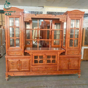 Kệ Tivi Gỗ Tự Nhiên 2 Tủ Kính Cổ Điển Mới 99% (Nhiều Mẫu)