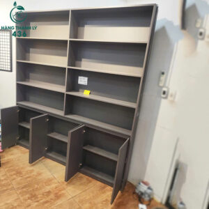 - Mô tả: Tủ hồ sơ cũ 4 tầng 8 ngăn được làm từ gỗ màu xám tro, mang phong cách hiện đại, phù hợp nhiều không gian làm việc. Phía trên có nhiều ngăn kệ mở dùng để trưng bày tài liệu, sách hoặc đồ trang trí, bên dưới có 6 ngăn tủ cánh mở giúp lưu trữ hồ sơ quan trọng an toàn và gọn gàng. Cánh tủ bản lề inox, đóng mở êm, kết cấu chắc chắn, bề mặt nhẵn mịn, dễ lau chùi. Hàng còn mới khoảng 90%, thích hợp cho văn phòng, cửa hàng, phòng làm việc tại nhà cần tối ưu không gian và thẩm mỹ.