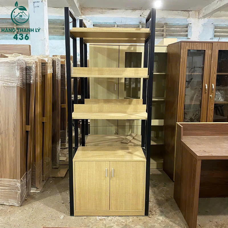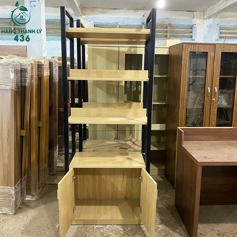 Mô tả: Kệ trưng bày với thiết kế gỗ màu sáng kết hợp khung sắt đen siêu chắc chắn, mang phong cách hiện đại và bền bỉ. Phía trên gồm nhiều tầng giúp trưng bày sản phẩm, hồ sơ, đồ decor hoặc hàng hóa gọn gàng. Bên dưới có tủ hai cánh tiện để đồ ít dùng, giúp không gian luôn sạch sẽ và ngăn nắp. Kệ phù hợp cho cửa hàng, văn phòng, phòng khách, phòng ngủ hoặc các quầy kinh doanh cần tối ưu diện tích mà vẫn đảm bảo tính thẩm mỹ.