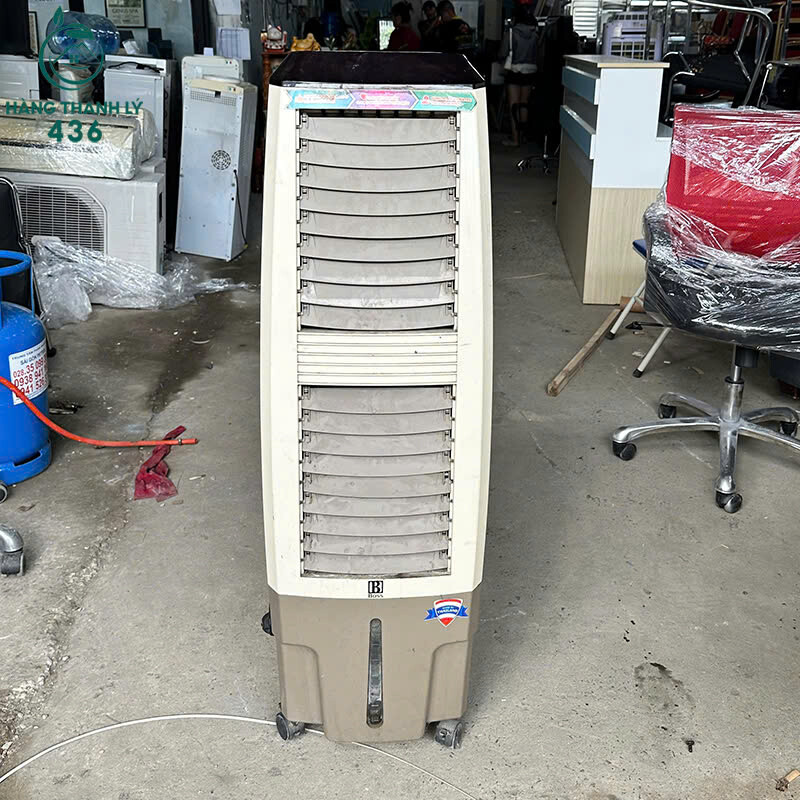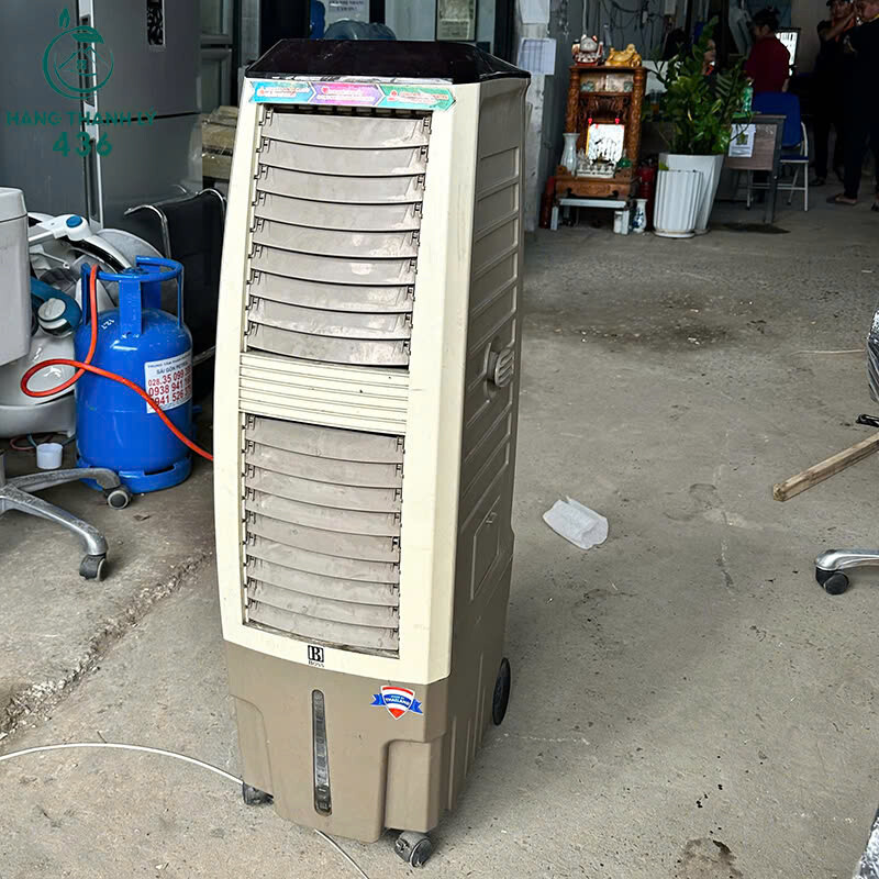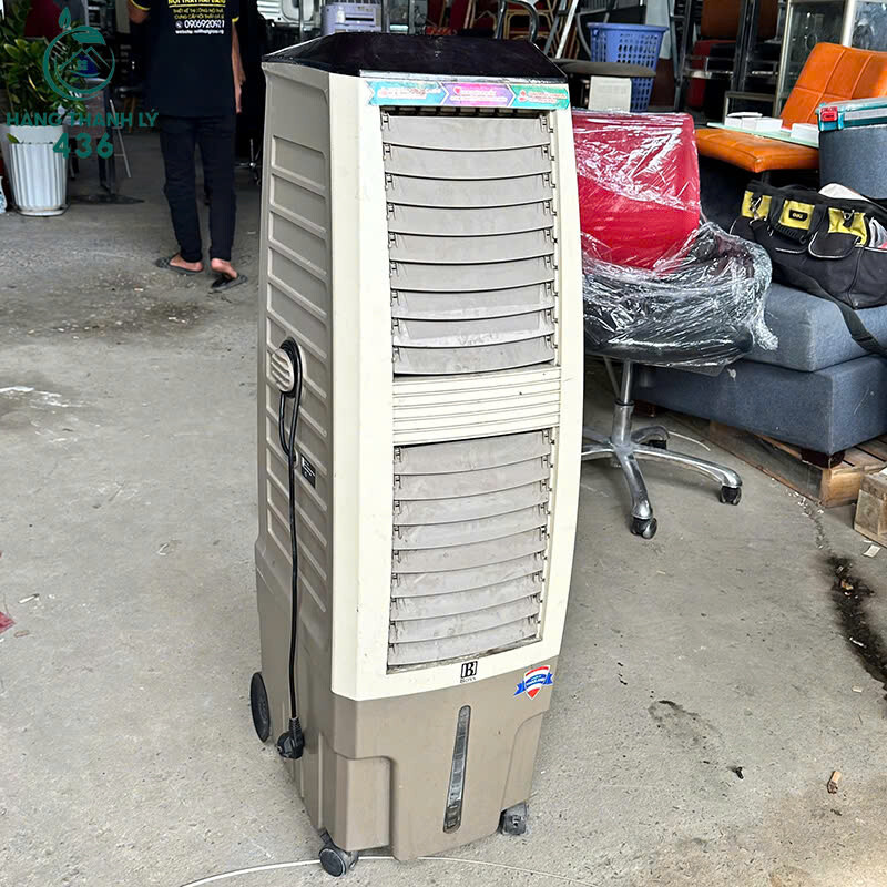 - Mô tả: Quạt điều hòa cũ với thiết kế đứng gọn gàng, màu trắng và be trung tính, phù hợp với nhiều không gian như phòng khách, văn phòng hoặc cửa hàng. Mặt trước có hệ thống cửa gió lớn giúp phân phối hơi mát đều khắp phòng. Máy trang bị bánh xe tiện lợi, dễ dàng di chuyển đến vị trí mong muốn. Bên hông có dây điện gọn gàng, thuận tiện khi sử dụng. Sản phẩm hoạt động bằng hơi nước, giúp làm mát tự nhiên, tiết kiệm điện hơn so với máy lạnh. Đây là lựa chọn lý tưởng cho mùa nóng, mang lại cảm giác dễ chịu và thoải mái.