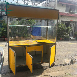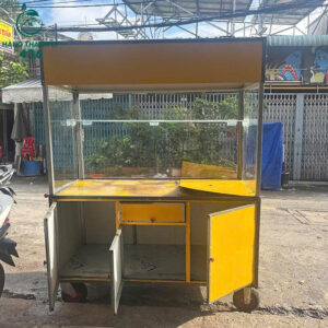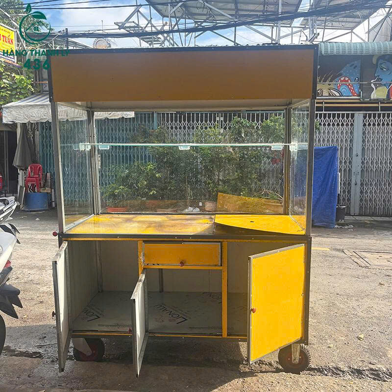 - Mô tả: Quầy cafe cũ được làm từ chất liệu sơn tĩnh điện chắc chắn, bền bỉ, với thiết kế thông minh giúp tối ưu hóa không gian bán hàng. Sản phẩm có kệ kính trong suốt giúp trưng bày sản phẩm dễ dàng và bắt mắt. Quầy còn tích hợp các tủ lưu trữ rộng rãi bên dưới để đựng dụng cụ, nguyên liệu, giúp bạn tiết kiệm diện tích và thuận tiện trong việc sử dụng. Màu sắc vàng đỏ tươi sáng sẽ tạo điểm nhấn thu hút khách hàng, thích hợp cho các quán cafe, cửa hàng bán đồ ăn nhanh.