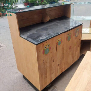 - Mô tả: Quầy có thiết kế nhỏ gọn, chắc chắn, dễ dàng di chuyển, rất phù hợp cho các quán cafe, trà sữa, và cửa hàng nhỏ. Mặt quầy kính trong suốt giúp trưng bày sản phẩm hiệu quả, trong khi các họa tiết trên bề mặt quầy mang lại vẻ sinh động và thu hút. Quầy cũng tích hợp ngăn chứa đồ tiện lợi, giúp bảo quản vật dụng cần thiết.