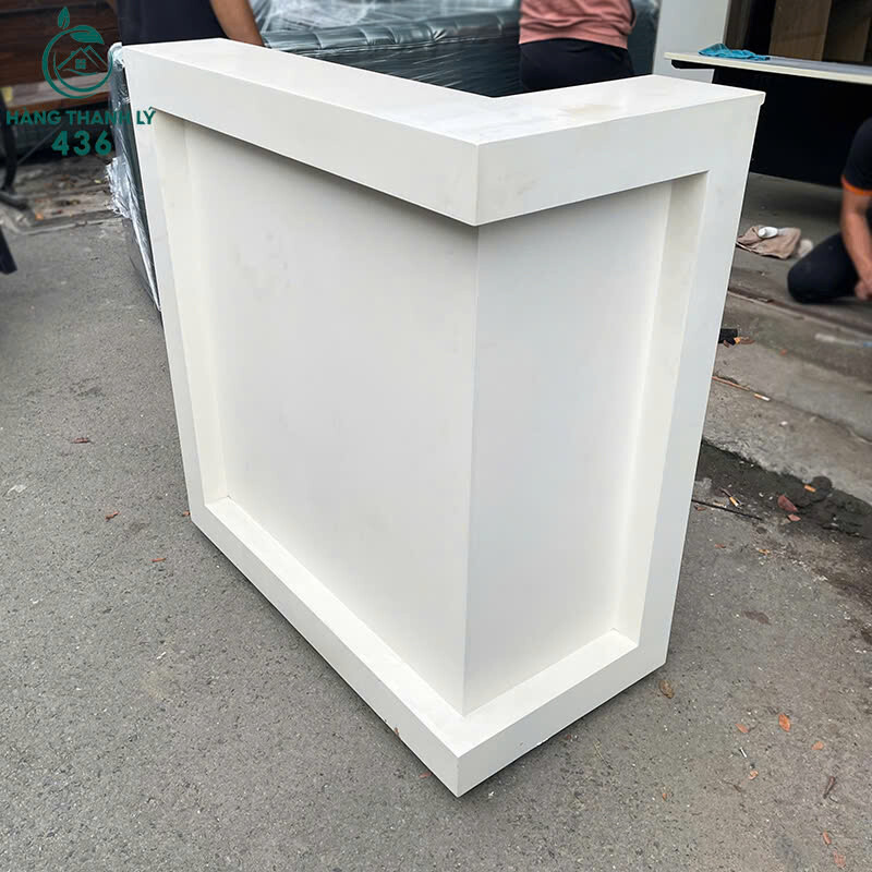 - Mô tả: Quầy lễ tân cũ màu trắng được thiết kế gọn gàng, hiện đại, phù hợp cho spa, salon, cửa hàng, văn phòng nhỏ hoặc quán cafe. Chất liệu gỗ, dễ lau chùi, độ bền cao. Bên trong có ngăn kéo khóa, ngăn để CPU hoặc tài liệu, giúp bố trí vật dụng ngăn nắp. Mặt quầy cao vừa tầm, tạo không gian làm việc riêng tư và chuyên nghiệp. Kết cấu chắc chắn, màu trắng tinh tế dễ phối hợp với mọi phong cách nội thất. Sản phẩm còn mới 90%, sẵn sàng sử dụng ngay.