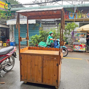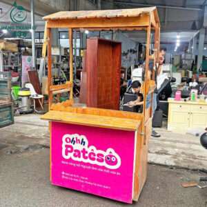 - Mô tả: Quầy gỗ bán hàng cũ có mái che, thiết kế gọn gàng, dễ di chuyển và phù hợp kinh doanh nhiều loại sản phẩm như đồ ăn vặt, nước uống, cafe mang đi. Khung gỗ chắc chắn, bề mặt phẳng dễ bày trí hàng hóa, phần mái tạo điểm nhấn và che nắng mưa nhẹ. Có thể tùy chỉnh trang trí theo thương hiệu riêng để thu hút khách hàng. Sản phẩm còn nguyên kết cấu, sử dụng tốt, tiết kiệm chi phí đầu tư quầy mới.