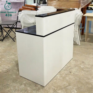 - Mô tả: Quầy lễ tân nhỏ gọn được thiết kế đơn giản nhưng tinh tế với gam màu trắng chủ đạo kết hợp viền đen nổi bật. Kích thước vừa phải, phù hợp cho những không gian tiếp tân nhỏ, văn phòng, cửa hàng hoặc spa. Chất liệu gỗ bền chắc, chống trầy xước và dễ vệ sinh. Thiết kế vuông vắn, gọn gàng giúp tiết kiệm diện tích mà vẫn đảm bảo công năng sử dụng, có thể bố trí máy tính, tài liệu và vật dụng cần thiết. Sản phẩm mang đến sự chuyên nghiệp, hiện đại cho không gian làm việc.