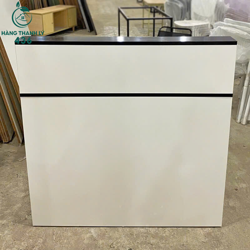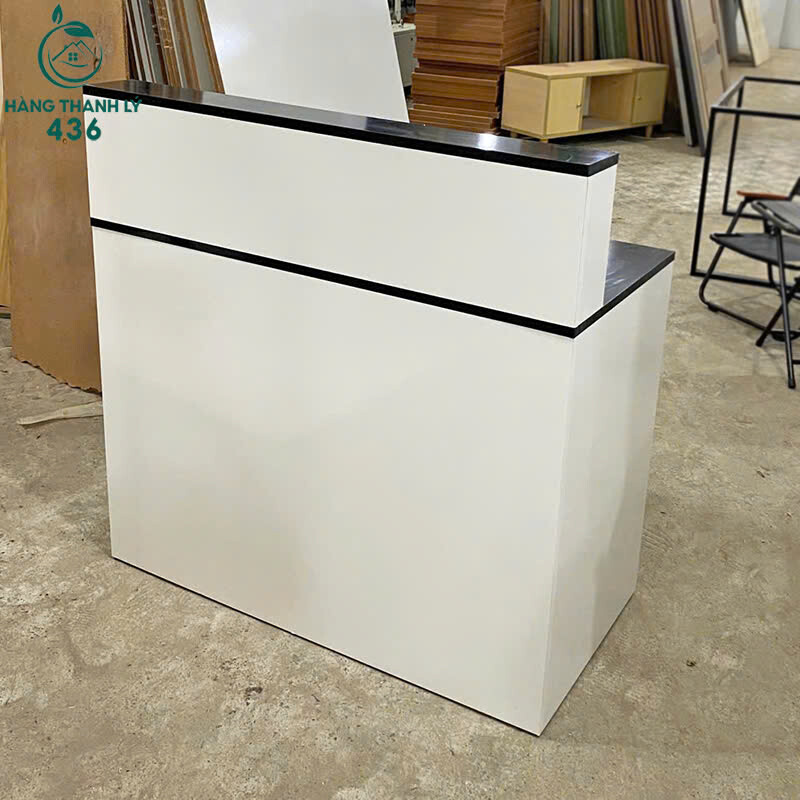 Quầy Lễ Tân 1M Nhỏ Gọn Mặt Trắng Viền Đen Thanh Lịch Mới 99%