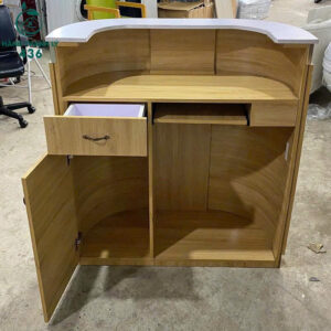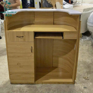 - Mô tả: Quầy cũ có thiết kế cong mềm mại, tạo cảm giác thân thiện và chuyên nghiệp cho không gian tiếp khách hoặc giao dịch. Mặt bàn màu trắng nổi bật trên nền gỗ sáng, dễ phối với nhiều phong cách nội thất. Quầy được trang bị ngăn kéo và tủ bên hông, thuận tiện cho việc lưu trữ hồ sơ, vật dụng văn phòng. Phía sau có khoảng trống rộng rãi, phù hợp cho người ngồi làm việc thoải mái. Kiểu dáng tổng thể hài hòa, kết cấu chắc chắn, thích hợp sử dụng tại lễ tân, showroom, cửa hàng hoặc văn phòng.