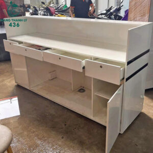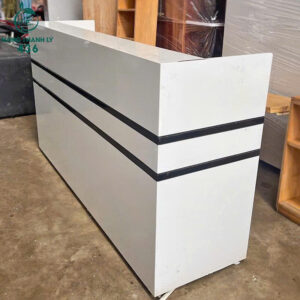 - Mô tả: Quầy với tông màu trắng chủ đạo kết hợp các đường sọc ngang màu đen, tạo điểm nhấn nổi bật và chuyên nghiệp. Mặt trước quầy được thiết kế cao mang lại không gian riêng tư và tạo ấn tượng sang trọng cho khu vực đón tiếp. Với cấu trúc vững chắc và bề mặt trơn nhẵn, quầy dễ dàng vệ sinh và bảo trì. Đây là lựa chọn lý tưởng cho các văn phòng, sảnh khách sạn, spa hoặc các cơ sở kinh doanh muốn tạo dấu ấn hiện đại và tinh tế.
