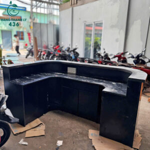 - Mô tả: Quầy lễ tân cũ này có thiết kế hiện đại với mặt bàn vân mây sang trọng và phần thân quầy được phối tông đen – xanh lá cực kỳ bắt mắt. Kiểu dáng cong chữ L bo góc mềm mại giúp bố trí không gian tiếp khách thêm chuyên nghiệp. Phần bàn làm việc bên trong rộng rãi, có khoang tủ phía dưới để lưu trữ hồ sơ, vật dụng gọn gàng. Đây là lựa chọn phù hợp cho văn phòng, showroom hoặc spa đang cần tiết kiệm chi phí đầu tư nội thất.