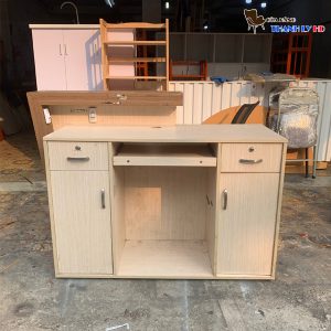 Mô tả: thích hợp sử dụng làm quầy lễ tân tại các quán cafe, cửa hàng. Thiết kế bên ngoài đơn giản, phía trong có nhiều ngăn chứa đồ dùng