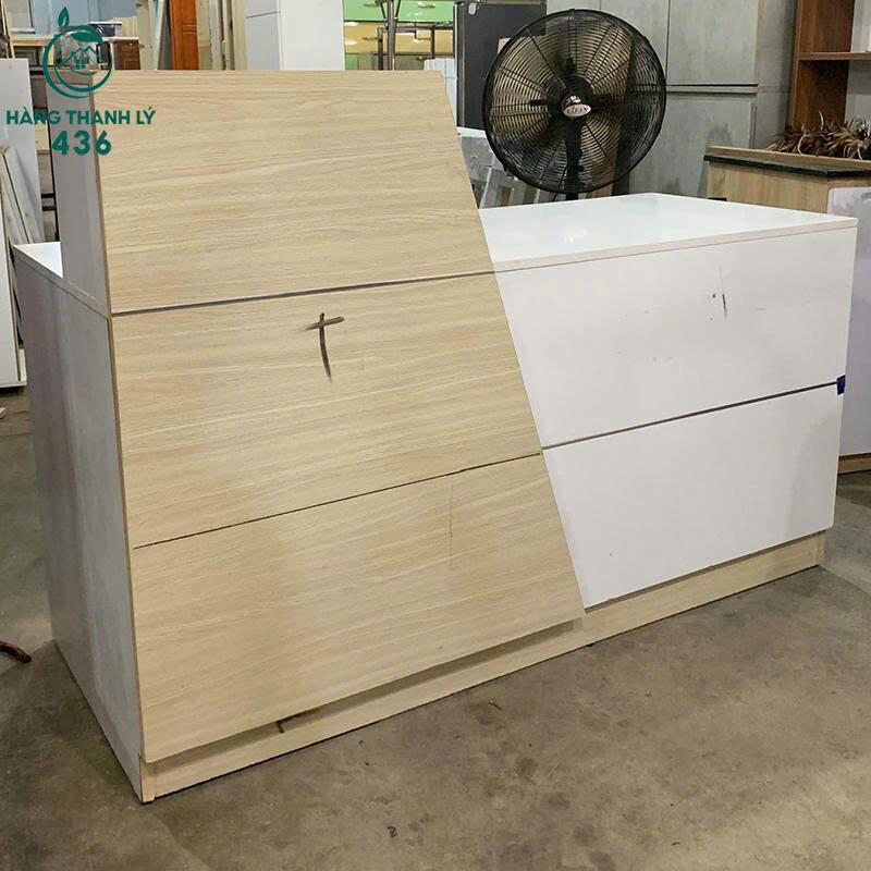 Quầy Lễ Tân Cũ Màu Trắng Phối Gỗ Kèm Hộc Tủ Bền Đẹp