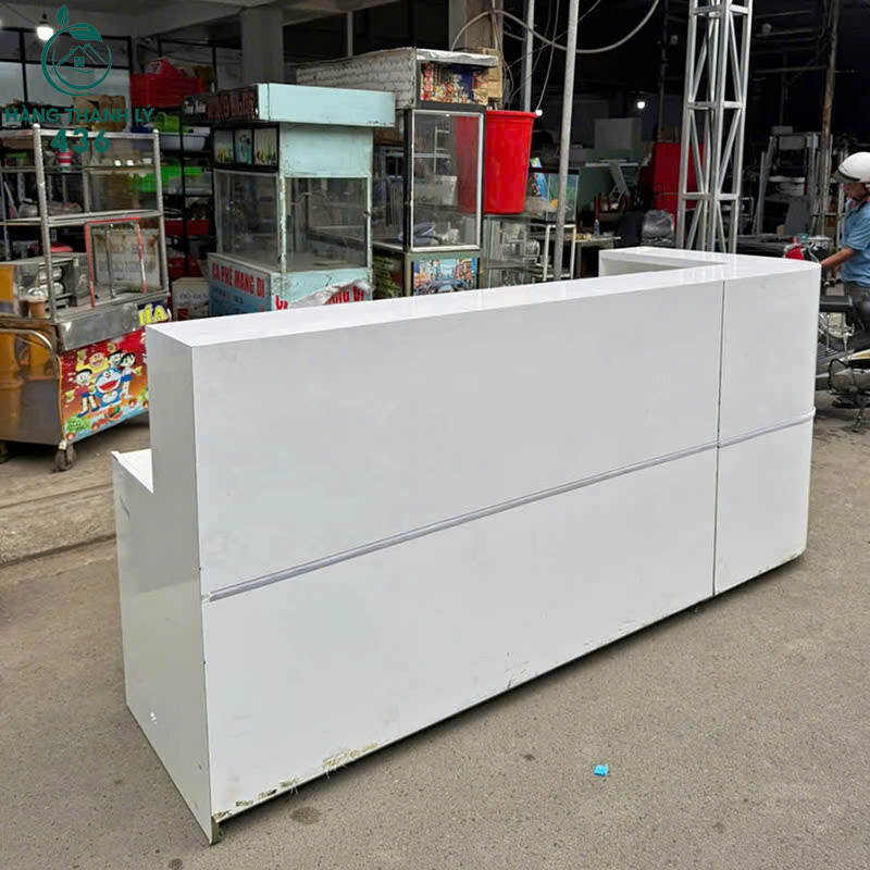 Quầy lễ tân cũ tại Hàng Thanh Lý 436 có thiết kế đa dạng, từ tủ đứng đến tủ treo, giúp tối ưu không gian. Anh chị muốn xem mẫu nào chỉ cần nhắn Zalo để em gửi hình.