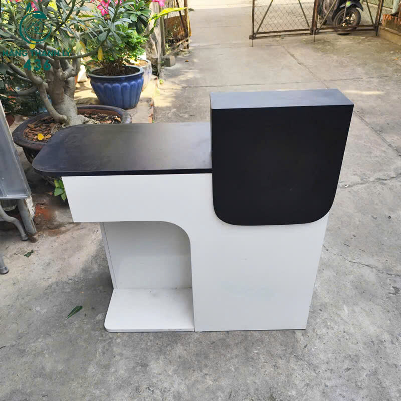 Mô tả: Mẫu quầy lễ tân thiết kế nhỏ gọn, kiểu dáng bo góc mềm mại, phối màu trắng đen hiện đại, dễ bố trí ở văn phòng, shop, spa hoặc cửa hàng quy mô vừa và nhỏ. Mặt quầy rộng rãi thuận tiện tiếp khách, phía trong có hộc trống để đồ và không gian ngồi làm việc thoải mái. Kết cấu chắc chắn, sử dụng ổn định, phù hợp nhu cầu làm quầy lễ tân hoặc quầy thu ngân với chi phí tiết kiệm.