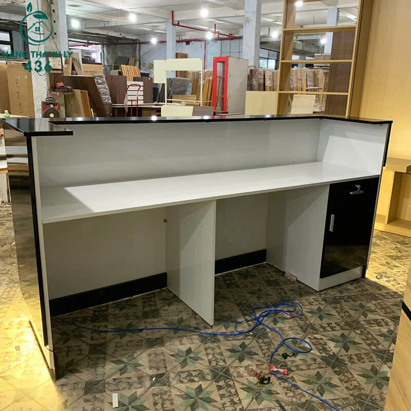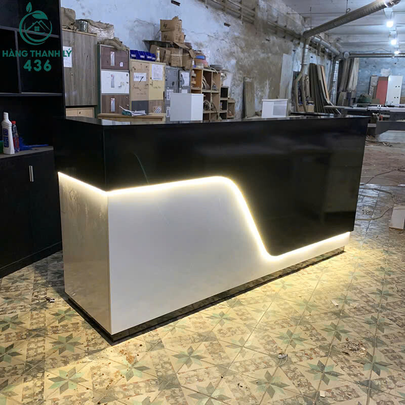 Quầy Tiếp Tân Gỗ Đen 2M2x1M1x75CM Với Đèn LED Mới 99%