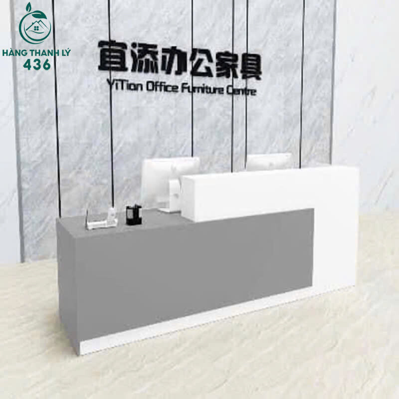 Thanh Lý Quầy Tiếp Tân Gỗ Tinh Tế Màu Trắng Xám Mới 99%