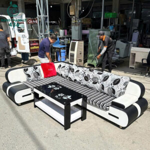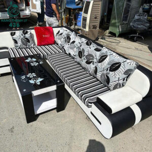 - Mô tả: Bộ sofa góc chữ L cũ thiết kế hiện đại, phối màu đen – trắng thanh lịch cùng gối họa tiết lá sang trọng. Đệm ngồi da dày dặn, gối bọc vải êm ái, kết hợp tay vịn bo tròn tạo cảm giác thoải mái khi ngồi hoặc nằm thư giãn. Kèm theo bàn kính mặt hoa văn tiện dụng, phù hợp đặt phòng khách, văn phòng hoặc không gian tiếp khách. Khung ghế chắc chắn, vải bọc dễ vệ sinh, hàng còn mới khoảng 90%, không rách, không sụp đệm. Kiểu dáng trẻ trung giúp không gian thêm nổi bật và tinh tế.