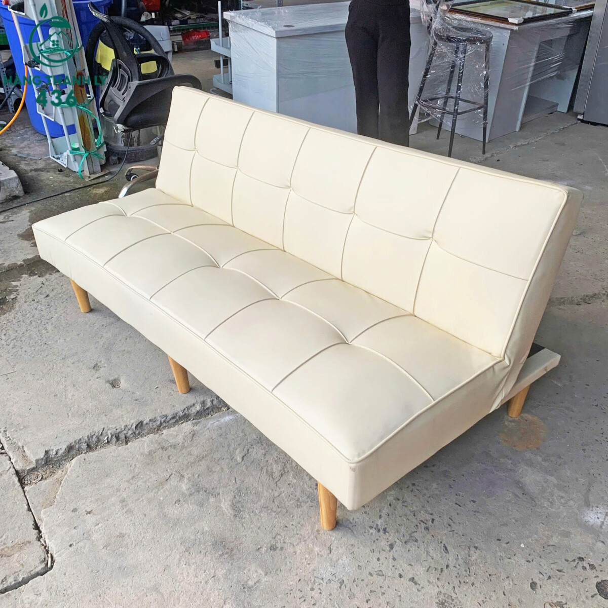 Mô tả: Mẫu sofa băng da cũ màu kem này có thiết kế đơn giản, hiện đại, phù hợp với nhiều không gian như phòng khách căn hộ, phòng chờ, văn phòng hoặc homestay. Ghế bọc da màu sáng, bề mặt còn đẹp, ít trầy xước, dễ lau chùi và tạo cảm giác sạch sẽ, thoáng không gian. Đệm ngồi dày, độ đàn hồi tốt, ngồi êm và không bị xẹp lún. Lưng ghế may ô vuông nhẹ, form thẳng, ngồi tựa thoải mái.