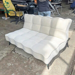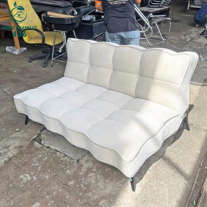 - Mô tả: Chiếc sofa cũ này có thiết kế thông minh, vừa là sofa ngồi thoải mái vừa có thể mở ra thành giường ngủ rộng rãi. Lớp bọc vải màu trắng mang đến cảm giác sáng sủa. Bề mặt nệm được may múi ô vuông giúp êm ái khi ngồi. Khung ghế và chân ghế chắc chắn. Sản phẩm rất phù hợp cho những không gian cần tiết kiệm diện tích như căn hộ nhỏ, phòng trọ, homestay hoặc phòng khách gia đình.