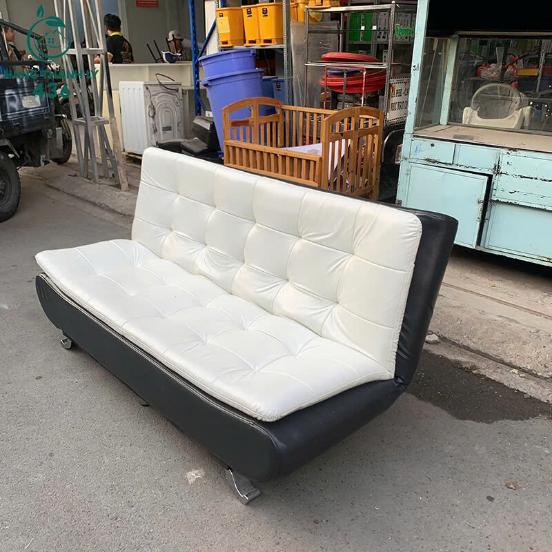 Mô tả: Mẫu sofa bed cũ bọc da phối trắng đen có thiết kế đơn giản, hiện đại, phù hợp với nhiều không gian khác nhau. Sản phẩm có thể sử dụng linh hoạt ở hai dạng: sofa tiếp khách ban ngày và giường nằm nghỉ ngơi khi cần. Đệm ngồi và đệm lưng may nút đều, tạo cảm giác êm ái khi ngồi hoặc nằm. Phần khung chắc chắn, kết cấu ổn định, thao tác gấp mở nhanh gọn, không tốn diện tích. Màu sắc trắng đen dễ phối nội thất, phù hợp căn hộ nhỏ, phòng trọ, văn phòng nghỉ trưa hoặc phòng khách gia đình.