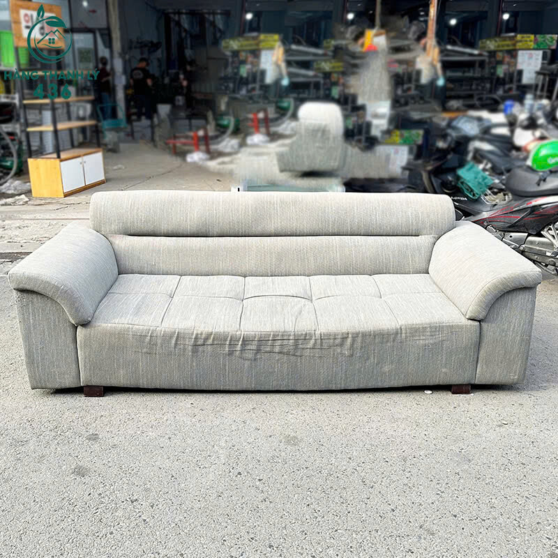 - Mô tả: Sofa băng cũ bọc vải màu xám mang phong cách hiện đại, thiết kế tinh tế với đường may gọn gàng và form ngồi thoải mái. Chất liệu vải bố dày, bề mặt mềm mịn, thoáng khí và dễ vệ sinh. Nệm ngồi êm ái, lưng tựa cao giúp nâng đỡ tốt cho người sử dụng, phù hợp đặt tại phòng khách gia đình, văn phòng tiếp khách. Khung chắc chắn, chân sofa thấp tạo cảm giác vững chãi. Hàng cũ còn mới khoảng 90%, sử dụng ổn định lâu dài, ngoại hình đẹp, giá rẻ hơn hàng mới tới 50%.