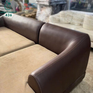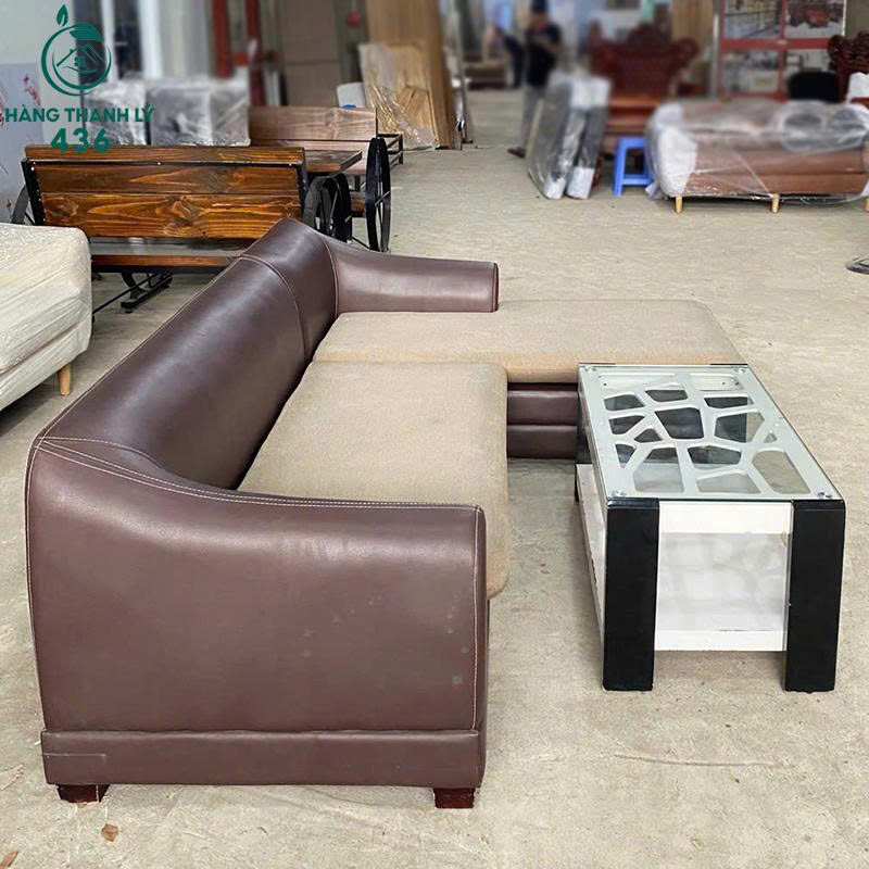 Sofa Góc L 2M3x1M65 Cũ Bọc Da Màu Nâu Khung Gỗ Chắc Chắn