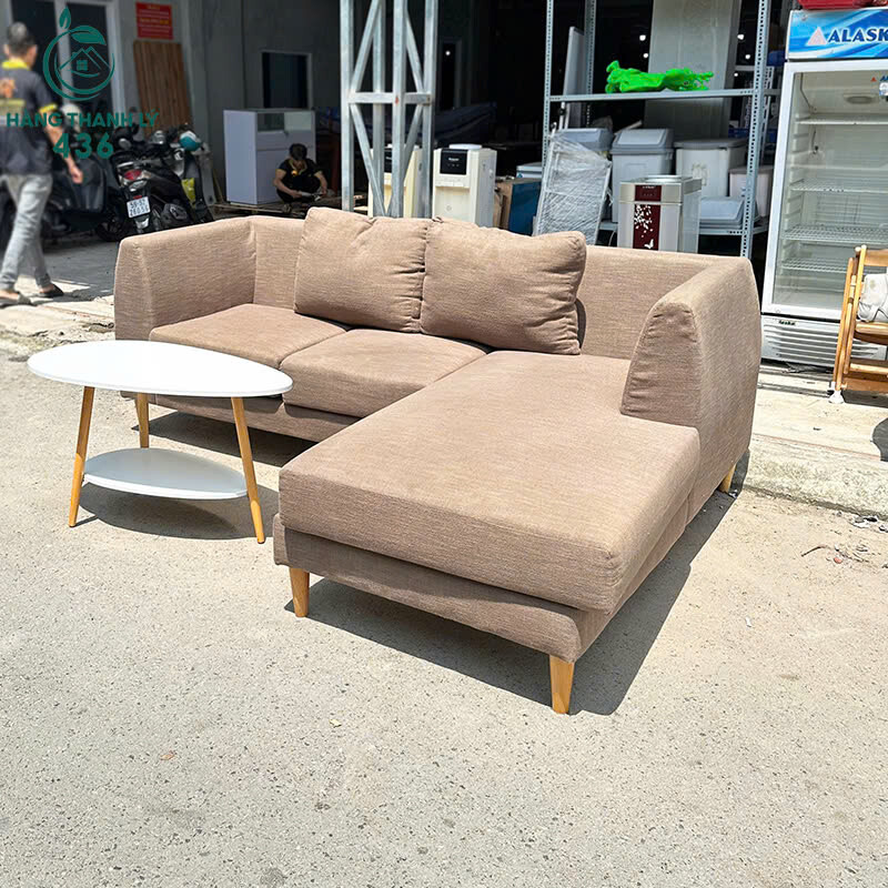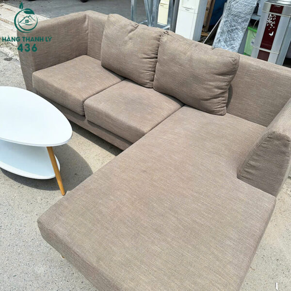 Sofa Góc L Cũ Bọc Vải Nâu Nhạt Đệm Dày Dặn Hiện Đại