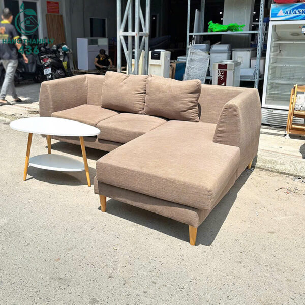 - Mô tả: Bộ sofa góc L cũ bọc vải nâu nhạt mang phong cách hiện đại, tối giản. Chất liệu vải mềm mịn, êm ái, dễ vệ sinh, phối cùng chân gỗ tự nhiên chắc chắn, tạo cảm giác ấm cúng và tinh tế cho không gian. Thiết kế dạng góc giúp tận dụng tối đa diện tích, phù hợp với phòng khách căn hộ, nhà phố hoặc văn phòng tiếp khách. Hàng cũ đẹp, nệm ngồi không xẹp lún, khung chắc chắn, sử dụng bền lâu. Giá bán cực kỳ hấp dẫn, hàng sẵn kho số lượng có hạn.