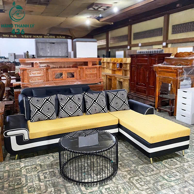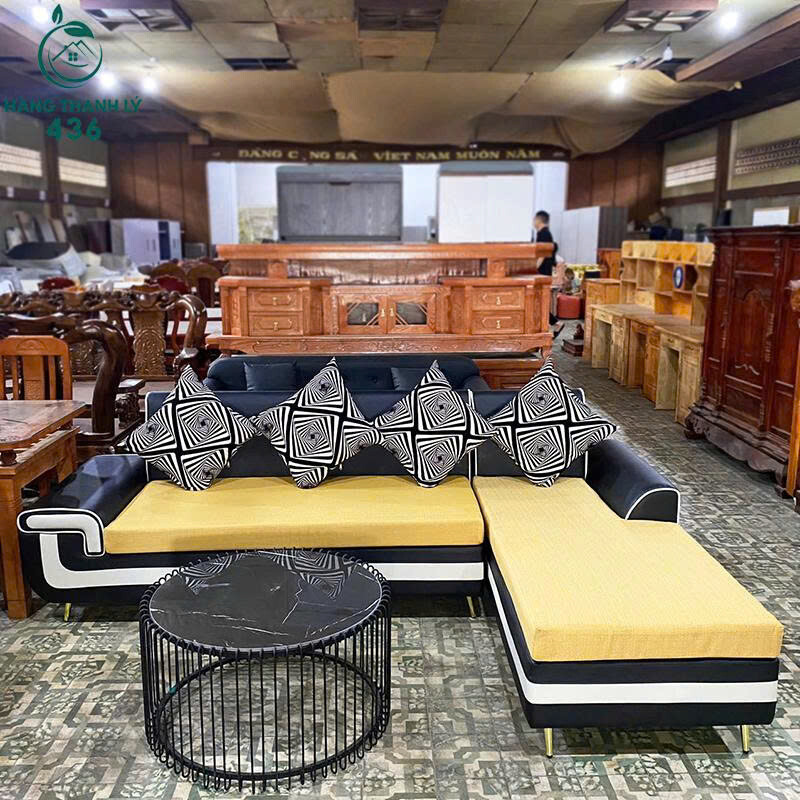 Sofa Góc L Màu Đen Vàng Phù Hợp Cho Phòng Khách Mới 99%